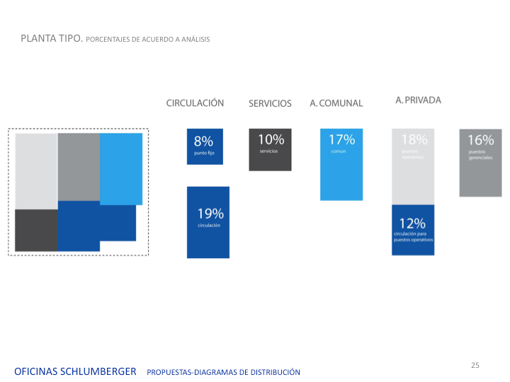 El proyecto se enfocaba en la reubicación de las oficinas que tenia dispersas la multinacional Schlumberger a un solo edificio diseñado a la medida. Se realizo un análisis completo y diagnóstico de su croquis espacial laboral. Este nos llevo a concluir que tipo de lote tenia el potencial de desarrollo idóneo para los nuevos requerimientos de la compañía en Colombia.
